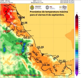 2023-09-08 - Hoy y durante el fin de semana continuará tiempo favorable para lluvias, chubascos y tormentas en la mayor parte de #Veracruz, las de mayor importancia en montañas y zona sur.
