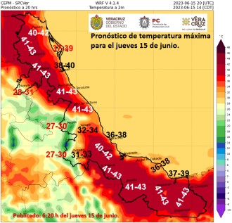2023-06-13 - Según el pronóstico de la Secretaría de Protección Civil Estatal, se espera una sensación térmica entre los 43 y 44 ºc para esta semana.