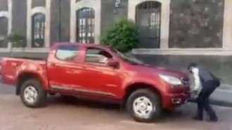 2020-11-08 - Con apoyo de varias mujeres que se interpusieron en el camino del conductor, la policía logró quitar la placa