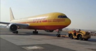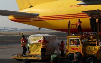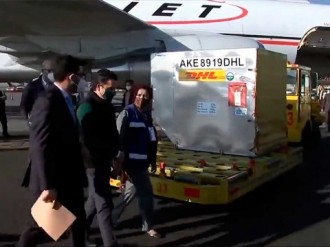 2020-12-23 - El cargamento, que será trasladado a una locación secreta para su resguardo, llegó en un avión de carga de DHL a las 9:01 horas
