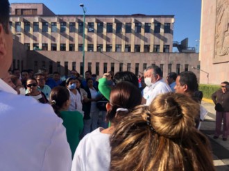2020-03-23 - En la Clínica 11 realizan paro de labores por falta de cubre bocas, guantes, gel antibacterial ni jabón