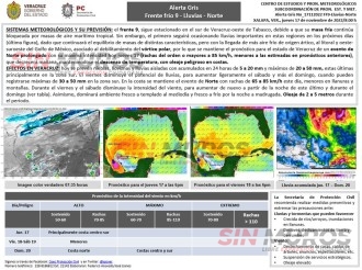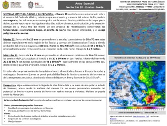 2022-11-22 - El Frente continúa como estacionario sobre el sureste del Golfo de México, mientras que en el oeste y suroeste del mismo Golfo persiste una vaguada