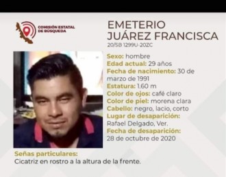 2020-11-16 - Era pintor de Rafael Delgado, reportado como desaparecido el 28 de octubre