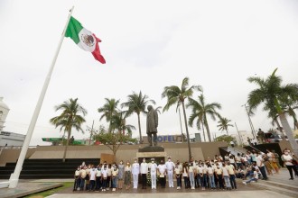 2022-03-21 - Acompañado por autoridades navales y militares coloca ofrenda floral y hace guardia de honor en la Plaza Cívica de Boca del Río